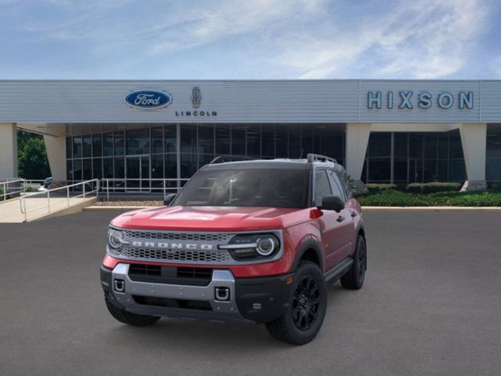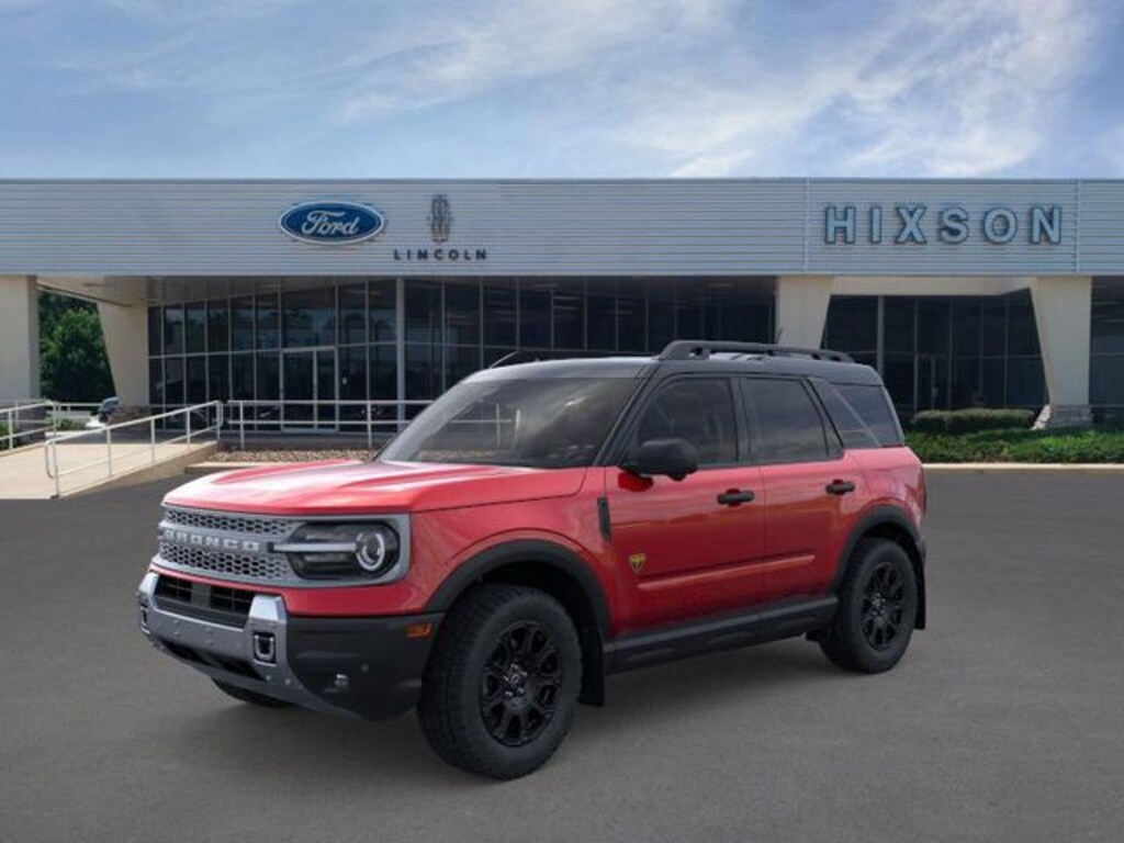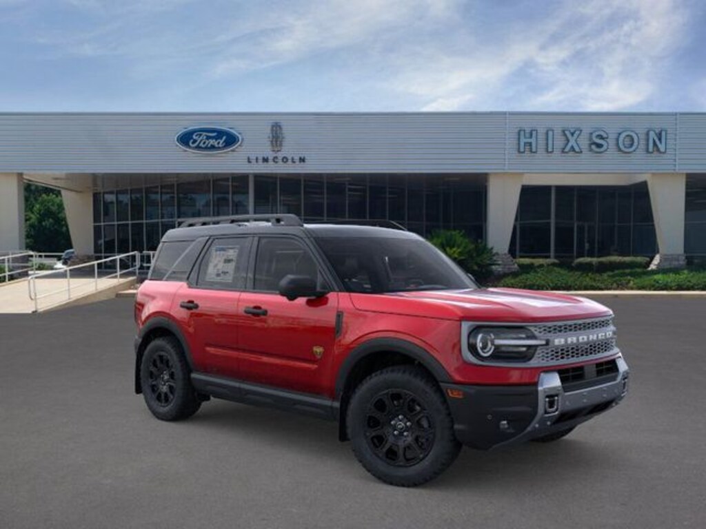 New Price! Ruby Red Metallic 2025 Ford Bronco Sport Badlands 4WD 8-Speed Automatic EcoBoost 2.0L I4 GTDi DOHC Turbocharged VCT 4-Wheel Disc Brakes, 6 Speakers, ABS brakes, Air Conditioning, Alloy wheels, AM/FM radio: SiriusXM, AM/FM Stereo, Auto High-beam Headlights, Auto-dimming Rear-View mirror, Automatic temperature control, Brake assist, Compass, Delay-off headlights, Driver door bin, Driver vanity mirror, Dual front impact airbags, Dual front side impact airbags, Electronic Stability Control, Emergency communication system: SYNC 4 911 Assist, Equipment Group 400A, Four wheel independent suspension, Front & Rear Splash Guards, Front anti-roll bar, Front Bucket Seats, Front Center Armrest, Front fog lights, Front License Plate Bracket, Front reading lights, Fully automatic headlights, Garage door transmitter, Heated door mirrors, Heated front seats, Heated steering wheel, Illuminated entry, Knee airbag, Leather Trimmed Front Bucket Seats, Low tire pressure warning, Memory seat, Occupant sensing airbag, Outside temperature display, Overhead airbag, Overhead console, Panic alarm, Passenger door bin, Passenger vanity mirror, Power door mirrors, Power driver seat, Power passenger seat, Power steering, Power windows, Radio data system, Rear anti-roll bar, Rear reading lights, Rear seat center armrest, Rear window defroster, Rear window wiper, Remote keyless entry, Security system, SiriusXM, Speed control, Speed-sensing steering, Speed-Sensitive Wipers, Split folding rear seat, Steering wheel mounted audio controls, SYNC 4 w/Enhanced Voice Recognition, Tachometer, Telescoping steering wheel, Tilt steering wheel, Traction control, Trip computer, Variably intermittent wipers, Wheels: 17" Matte Black-Painted Aluminum.
