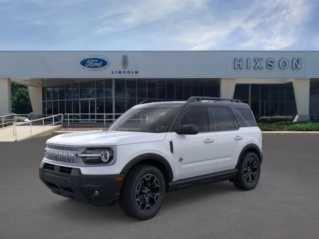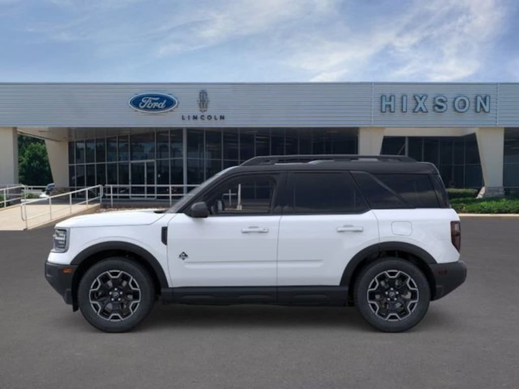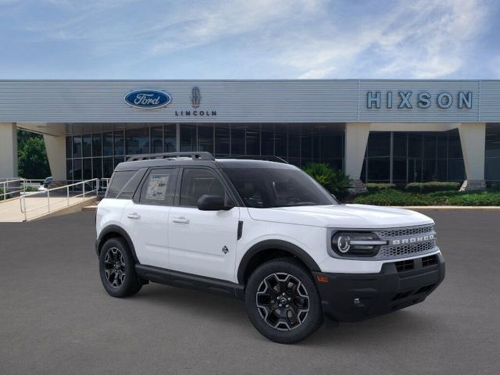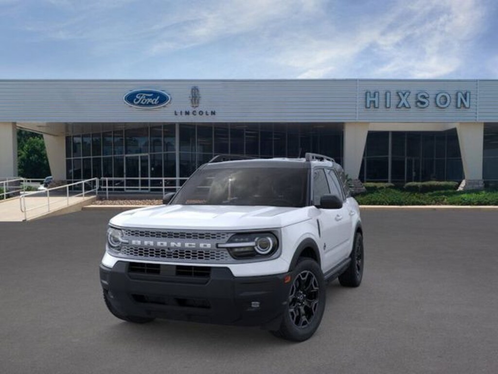 Oxford White 2025 Ford Bronco Sport Outer Banks 4WD 8-Speed Automatic 1.5L EcoBoost 4-Wheel Disc Brakes, 6 Speakers, ABS brakes, Air Conditioning, Alloy wheels, AM/FM radio: SiriusXM, AM/FM Stereo, Auto High-beam Headlights, Auto-dimming Rear-View mirror, Automatic temperature control, Brake assist, Compass, Delay-off headlights, Driver door bin, Driver vanity mirror, Dual front impact airbags, Dual front side impact airbags, Electronic Stability Control, Emergency communication system: SYNC 4 911 Assist, Four wheel independent suspension, Front anti-roll bar, Front Bucket Seats, Front Center Armrest, Front Driver/Passenger Seat Back Map Pockets, Front dual zone A/C, Front fog lights, Front License Plate Bracket, Front reading lights, Fully automatic headlights, Garage door transmitter, Heated door mirrors, Heated front seats, Heated steering wheel, Illuminated entry, Knee airbag, Low tire pressure warning, Memory seat, Occupant sensing airbag, Outside temperature display, Overhead airbag, Overhead console, Panic alarm, Passenger door bin, Passenger vanity mirror, Power door mirrors, Power driver seat, Power passenger seat, Power steering, Power windows, Premium Trimmed Front Bucket Seats w/Ebony/Roast, Radio data system, Rain sensing wipers, Rear anti-roll bar, Rear Parking Sensors, Rear reading lights, Rear seat center armrest, Rear window defroster, Rear window wiper, Remote keyless entry, Security system, SiriusXM, Speed control, Speed-sensing steering, Speed-Sensitive Wipers, Split folding rear seat, Steering wheel mounted audio controls, SYNC 4 w/Enhanced Voice Recognition, Tachometer, Telescoping steering wheel, Tilt steering wheel, Traction control, Trip computer, Variably intermittent wipers, Wheels: 18" Ebony Black-Painted Aluminum.