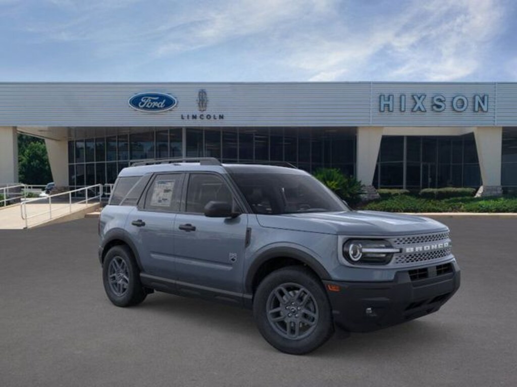 Azure Gray Metallic Tri-Coat 2025 Ford Bronco Sport Big Bend 4WD 8-Speed Automatic 1.5L EcoBoost 4-Wheel Disc Brakes, 6 Speakers, ABS brakes, Air Conditioning, Alloy wheels, AM/FM radio: SiriusXM, AM/FM Stereo, Auto High-beam Headlights, Automatic temperature control, Brake assist, Cargo Mat, Cloth w/Easy-to-Clean Front Bucket Seats, Compass, Convenience Package, Delay-off headlights, Driver door bin, Driver vanity mirror, Dual front impact airbags, Dual front side impact airbags, Electronic Stability Control, Emergency communication system: SYNC 4 911 Assist, Four wheel independent suspension, Front anti-roll bar, Front Bucket Seats, Front Center Armrest, Front Driver/Passenger Seat Back Map Pockets, Front License Plate Bracket, Front reading lights, Fully automatic headlights, Heated 8-Way Power Driver's Seat, Heated door mirrors, Illuminated entry, Knee airbag, LED Fog Lamps, Low tire pressure warning, Occupant sensing airbag, Outside temperature display, Overhead airbag, Overhead console, Panic alarm, Passenger door bin, Passenger vanity mirror, Power door mirrors, Power Moonroof, Power steering, Power windows, Premium Wrapped Steering Wheel, Radio data system, Rear anti-roll bar, Rear Parking Sensors, Rear reading lights, Rear seat center armrest, Rear window defroster, Rear window wiper, Remote keyless entry, Security system, SiriusXM, Speed control, Speed-sensing steering, Speed-Sensitive Wipers, Split folding rear seat, Steering wheel mounted audio controls, SYNC 4 w/Enhanced Voice Recognition, Tachometer, Telescoping steering wheel, Tilt steering wheel, Traction control, Trip computer, Universal Garage Door Opener (UGDO), Variably intermittent wipers, Wheels: 17" Carbonized Gray-Painted Aluminum.