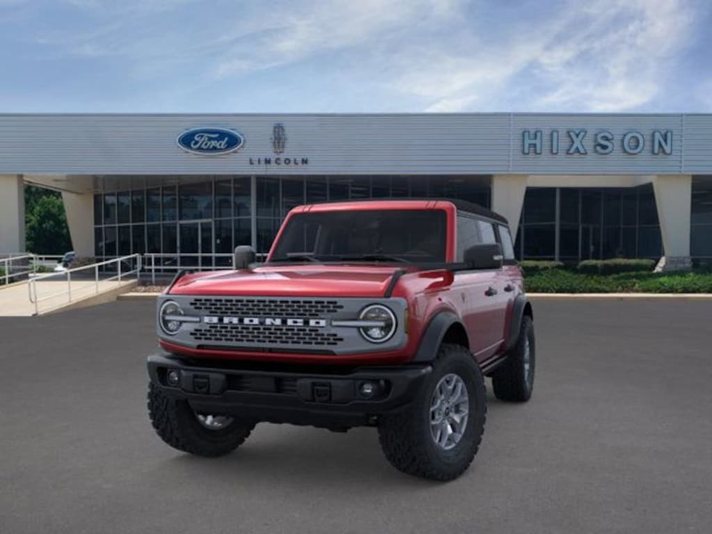 Ruby Red Metallic Tinted Clearcoat 2025 Ford Bronco Badlands 4WD 10-Speed Automatic 2.7L EcoBoost V6 2-Door Intelligent Access w/Lock/Unlock, 360-Degree Camera, 4-Wheel Disc Brakes, 4.7 Axle Ratio, 7 Speakers, ABS brakes, Adaptive Cruise Control, Air Conditioning, Alloy wheels, AM/FM radio: SiriusXM with 360L, AM/FM Stereo, Ambient Footwell Lighting, Auto High-Beam Headlamps, Auto High-beam Headlights, Auto-dimming Rear-View mirror, BLIS Blind Spot Information System, Brake assist, Compass, Connected Navigation, Delay-off headlights, Dr & Pass Illuminated Sliding Visor Vanity Mirrors, Driver door bin, Driver vanity mirror, Dual front impact airbags, Dual front side impact airbags, Dual Smart Charging USB Ports, Dual-Zone Electronic Automatic Temperature Control, Electronic Stability Control, Emergency communication system: 911 Assist, Equipment Group 334A Lux Package, Evasive Steering Assist, Exterior Parking Camera Rear, Front anti-roll bar, Front Bucket Seats, Front Center Armrest, Front fog lights, Front Parking Sensors, Front reading lights, Front Row Heated Seats, Front wheel independent suspension, Fully automatic headlights, Heated door mirrors, Heated front seats, Heated steering wheel, Illuminated entry, Information on Demand Panel, Integrated roll-over protection, Internet access capable: FordPass Connect, Lane-Keeping System, Leather Shift Knob, Low tire pressure warning, Marine Grade Vinyl Heated Bucket Seats, Occupant sensing airbag, Outside temperature display, Overhead airbag, Overhead console, Panic alarm, Passenger door bin, Passenger vanity mirror, Power door mirrors, Power Outlet - Back Side of Center Floor Console, Power steering, Power windows, Pre-Collision Assist w/Automatic Emergency Braking, Radio data system, Radio: B&O Sound System by Bang & Olufsen, Rear Parking Sensors, Rear-View Camera, Remote keyless entry, Security system, Sideview Mirrors, SiriusXM w/360L, Speed control, Split folding rear seat, Steering wheel mounted audio controls, SYNC 4, Tachometer, Telescoping steering wheel, Tilt steering wheel, Traction control, Trip computer, Universal Garage Door Opener, Variably intermittent wipers, Voltmeter, Wheels: 17" Carbonized Gray-Painted Aluminum. Price includes: $2500 - Retail Customer Cash. Exp. 03/31/2026