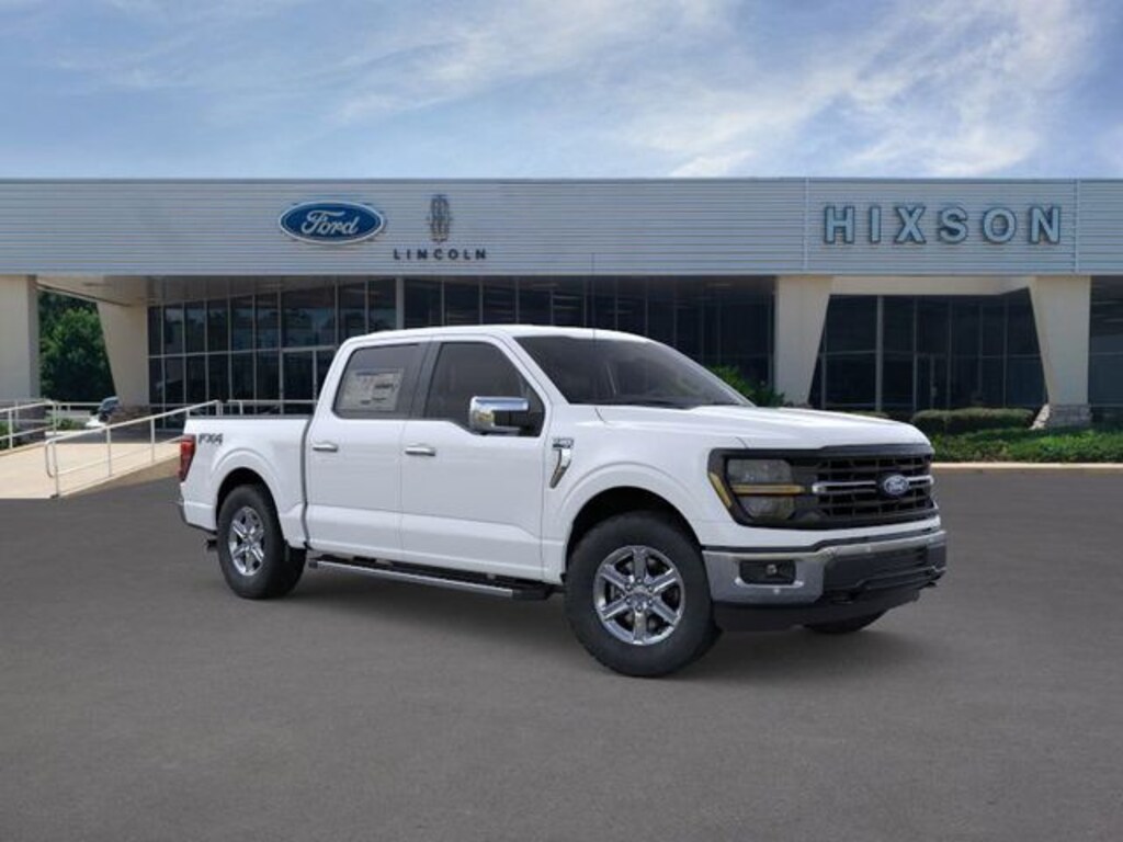 Oxford White 2025 Ford F-150 XLT 4WD 10-Speed Automatic 5.0L V8 4WD, 3.31 Axle Ratio, 4-Wheel Disc Brakes, 6 Speakers, ABS brakes, Air Conditioning, Alloy wheels, AM/FM radio: SiriusXM with 360L, Auto High-beam Headlights, Brake assist, Bumpers: chrome, Chrome wheels, Cloth 40/20/40 Front Seat, Compass, Delay-off headlights, Driver door bin, Driver vanity mirror, Dual front impact airbags, Dual front side impact airbags, Electronic Stability Control, Emergency communication system: SYNC 4 911 Assist, Front anti-roll bar, Front Center Armrest, Front fog lights, Front reading lights, Front wheel independent suspension, Fully automatic headlights, Heated door mirrors, Illuminated entry, Low tire pressure warning, Occupant sensing airbag, Outside temperature display, Overhead airbag, Overhead console, Panic alarm, Passenger door bin, Passenger vanity mirror, Power door mirrors, Power steering, Power windows, Radio data system, Radio: AM/FM Stereo w/SiriusXM 360L, Rear Parking Sensors, Rear reading lights, Rear step bumper, Rear window defroster, Remote keyless entry, Security system, Speed control, Split folding rear seat, Steering wheel mounted audio controls, SYNC 4 w/Enhanced Voice Recognition, Tachometer, Telescoping steering wheel, Tilt steering wheel, Traction control, Trip computer, Variably intermittent wipers, Voltmeter, Wheels: 18" Chrome-Like PVD, 4WD.