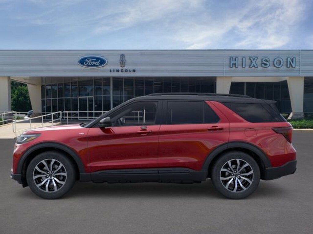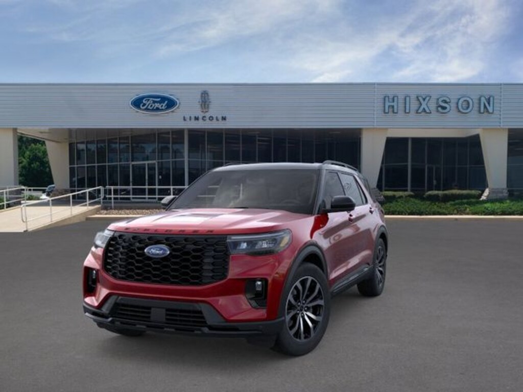 Red Metallic 2026 Ford Explorer ST-Line 4WD 10-Speed Automatic 2.3L EcoBoost I-4 4WD, 10 Speakers, 2nd Row Captain's Chairs w/E-Z Entry and Armrest, 3rd row seats: bench, 4-Wheel Disc Brakes, ABS brakes, Air Conditioning, Alloy wheels, AM/FM radio: SiriusXM with 360L, Apple CarPlay/Android Auto, Auto High-beam Headlights, Automatic temperature control, Black Painted Roof, BlueCruise (equipment + 1-Year + 90-Day Plan), BlueCruise Hardware, Brake assist, Bumpers: body-color, Compass, Delay-off headlights, Driver door bin, Driver vanity mirror, Dual front impact airbags, Dual front side impact airbags, Electronic Stability Control, Emergency communication system: 911 Assist, Equipment Group 300A Standard Package, Exterior Parking Camera Rear, Four wheel independent suspension, Front and 2nd Rows Floor Liners with Carper Floor Mats, Front anti-roll bar, Front Bucket Seats, Front Center Armrest, Front dual zone A/C, Front fog lights, Front reading lights, Fully automatic headlights, Garage door transmitter, Heated door mirrors, Heated front seats, Heated steering wheel, Heated Unique Cloth Captain's Chairs, Illuminated entry, Knee airbag, Leather steering wheel, Low tire pressure warning, Navigation System, Occupant sensing airbag, Outside temperature display, Overhead airbag, Overhead console, Panic alarm, Panoramic Fixed Glass Roof with Power Shade, Passenger door bin, Passenger vanity mirror, Power door mirrors, Power driver seat, Power Liftgate, Power passenger seat, Power steering, Power windows, Radio: B&O Sound System by Bang and Olufsen, Rear air conditioning, Rear anti-roll bar, Rear reading lights, Rear window defroster, Rear window wiper, Remote keyless entry, SecuriCode Keyless Entry Keypad, Security system, Speed control, Speed-sensing steering, Speed-Sensitive Wipers, Split folding rear seat, Spoiler, Steering wheel mounted audio controls, Tachometer, Telescoping steering wheel, Tilt steering wheel, Traction control, Trip computer, Variably intermittent wipers, Wheels: 20" Ebony-Painted Machined Aluminum, 4WD.