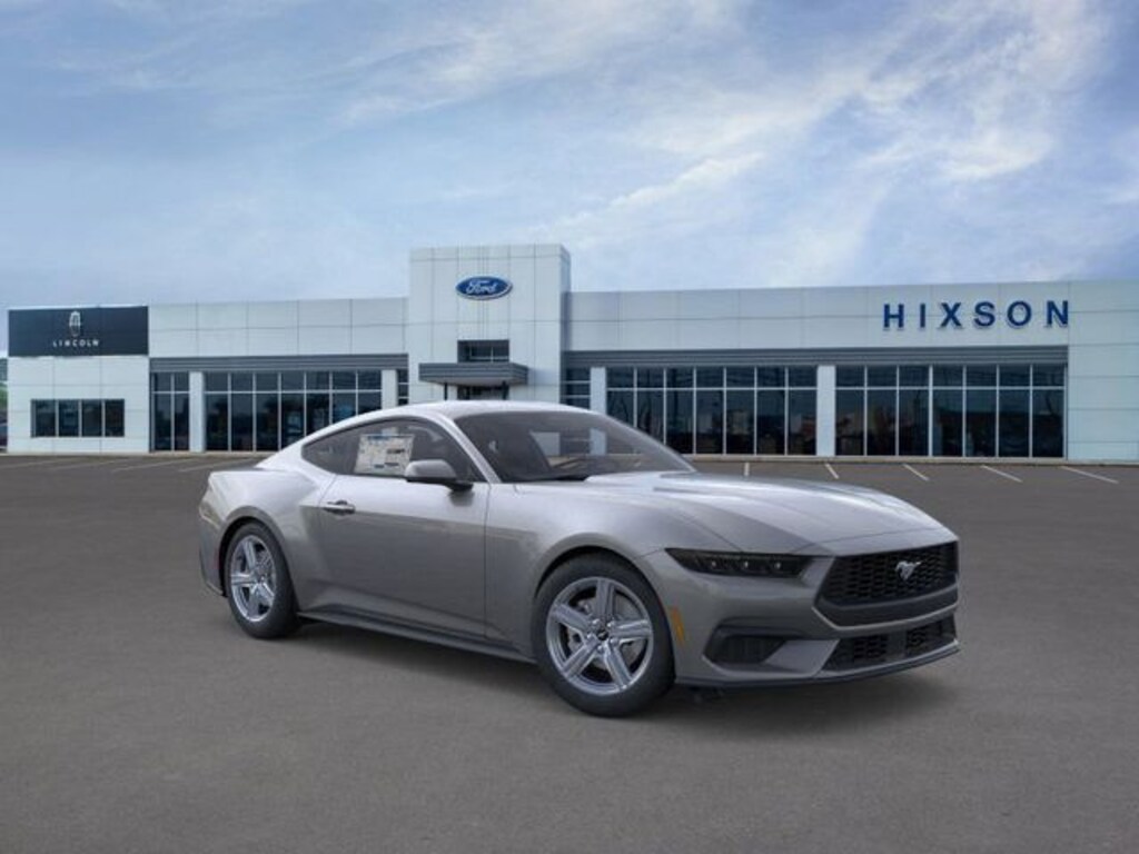 Carbonized Gray Metallic 2026 Ford Mustang RWD 10-Speed Automatic EcoBoost 2.3L I4 GTDi DOHC Turbocharged VCT 4-Wheel Disc Brakes, ABS brakes, Air Conditioning, Alloy wheels, AM/FM Stereo, Auto High-beam Headlights, Automatic temperature control, Brake assist, Bumpers: body-color, Compass, Delay-off headlights, Driver door bin, Driver vanity mirror, Dual front impact airbags, Dual front side impact airbags, Electronic Stability Control, Emergency communication system: 911 Assist, Exterior Parking Camera Rear, Four wheel independent suspension, Front anti-roll bar, Front Bucket Seats, Front Center Armrest, Front dual zone A/C, Front reading lights, Fully automatic headlights, Illuminated entry, Internet access capable: FordPass Connect, Knee airbag, Leather Shift Knob, Low tire pressure warning, Occupant sensing airbag, Outside temperature display, Overhead airbag, Overhead console, Panic alarm, Passenger door bin, Passenger vanity mirror, Power door mirrors, Power steering, Power windows, Radio data system, Rain sensing wipers, Rear anti-roll bar, Rear Parking Sensors, Rear window defroster, Remote keyless entry, Speed control, Speed-sensing steering, Speed-Sensitive Wipers, Split folding rear seat, Sport steering wheel, Steering wheel mounted audio controls, SYNC 4, Tachometer, Telescoping steering wheel, Tilt steering wheel, Traction control, Trip computer, Variably intermittent wipers, Voltmeter, Wheels: 18" x 8" Painted Shadow Silver Cast Alum.
