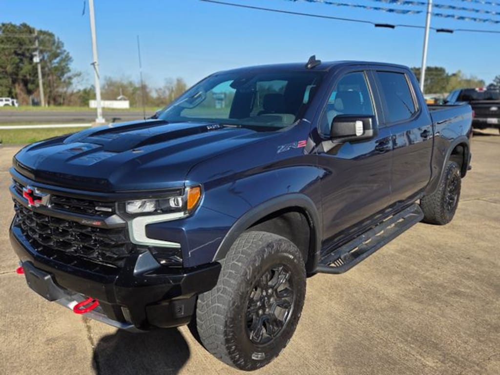 Northsky Blue Metallic 2022 Chevrolet Silverado 1500 ZR2 4WD 10-Speed Automatic EcoTec3 6.2L V8 LOCAL TRADE, NON SMOKER, DETAILED, OIL CHANGE, NEW TIRES, NEW BRAKES, APPLE CARPLAY, ANDROID AUTO, 10-Speed Automatic, 4WD, Jet Black/Graystone Leather, 10-Way Power Driver Seat w/Lumbar, 10-Way Power Passenger Seat Adjuster w/Lumbar, 12.3" Multicolor Reconfigurable Digital Display, 120-Volt Bed Mounted Power Outlet, 120-Volt Instrument Panel Power Outlet, 170 Amp Alternator, 2 USB Data Ports, 2nd Row Heated Outboard Seats, 3.23 Rear Axle Ratio, 4-Wheel Disc Brakes, 7 Speakers, ABS brakes, Air Conditioning, All-Weather Floor Liner (LPO), Alloy wheels, AM/FM radio: SiriusXM with 360L, Apple CarPlay/Android Auto, Auto High-beam Headlights, Auto-dimming door mirrors, Auto-Dimming Inside Rear-View Mirror, Auto-dimming Rear-View mirror, Auto-Locking Rear Differential, Automatic Emergency Braking, Automatic temperature control, Bed View Camera, Bluetooth® For Phone, Brake assist, Chevrolet Connected Access Capable, Chevytec Spray-On Black Bedliner, Color-Keyed Carpeting Floor Covering, Compass, Deep-Tinted Glass, Delay-off headlights, Driver door bin, Driver Memory, Driver vanity mirror, Dual Exhaust, Dual front impact airbags, Dual front side impact airbags, Dual Rear USB Ports (Charge Only), Electric Rear-Window Defogger, Electrical Steering Column Lock, Electronic Cruise Control, Electronic Stability Control, Electronic Transmission Range Selector Shifter, EZ Lift Power Lock & Release Tailgate, Floor Mounted Center Console, Following Distance Indicator, Forward Collision Alert, Front anti-roll bar, Front Bucket Seats, Front Center Armrest, Front dual zone A/C, Front fog lights, Front LED Fog Lamps, Front License Plate Kit, Front Pedestrian Braking, Front Rainsensing Wipers, Front reading lights, Front wheel independent suspension, Fully automatic headlights, Garage door transmitter, HD Surround Vision, Heated door mirrors, Heated Driver & Front Outboard Passenger Seats, Heated front seats, Heated rear seats, Heated Steering Wheel, Heated steering wheel, Heavy-Duty Air Filter, High Gloss Black Mirror Caps, Hill Descent Control, Hitch Guidance, Hitch Guidance w/Hitch View, Illuminated entry, Integrated Trailer Brake Controller, IntelliBeam Automatic High Beam On/Off, Keyless Open & Start, Lane Keep Assist w/Lane Departure Warning, Leather Wrapped Steering Wheel, LED Cargo Area Lighting, Low tire pressure warning, Manual Tilt/Telescoping Steering Column, Memory seat, Not Equipped w/Steering Column Lock, Occupant sensing airbag, Off-Road Assist Steps (LPO), OnStar & Chevrolet Connected Services Capable, Outside Heated Power-Adjustable Mirrors, Outside temperature display, Overhead airbag, Overhead console, Panic alarm, Passenger door bin, Passenger vanity mirror, Perforated Leather Seat Trim, Performance Red Recovery Hooks, Perimeter Lighting, Power door mirrors, Power driver seat, Power Front Passenger Windows w/Express Up/Down, Power Front Windows w/Driver Express Up/Down, Power passenger seat, Power Rear Windows w/Express Down, Power Sliding Rear Window w/Rear Defogger, Power steering, Power Sunroof, Power windows, Preferred Equipment Group 3LT, Premium audio system: Chevrolet Infotainment 3 Premium, Premium Bose 7-Speaker Sound System, Radio data system, Radio: Chevrolet Infotainment 3 Premium System, Rain sensing wipers, Rear Cross Traffic Alert-Braking, Rear Park Assist, Rear Pedestrian Detection, Rear reading lights, Rear seat center armrest, Rear step bumper, Rear Wheelhouse Liners, Rear window defroster, Remote keyless entry, Remote Vehicle Starter System, Safety Alert Seat, Security system, SiriusXM w/360L, Speed control, Speed-sensing steering, Split folding rear seat, Standard Tailgate, Steering Wheel Audio Controls, Steering wheel mounted audio controls, Tachometer, Telescoping steering wheel, Theft Deterrent System (Unauthorized Entry), Tilt steering wheel, Traction control, Trailer Camera Provisions, Trailer Side Blind Zone