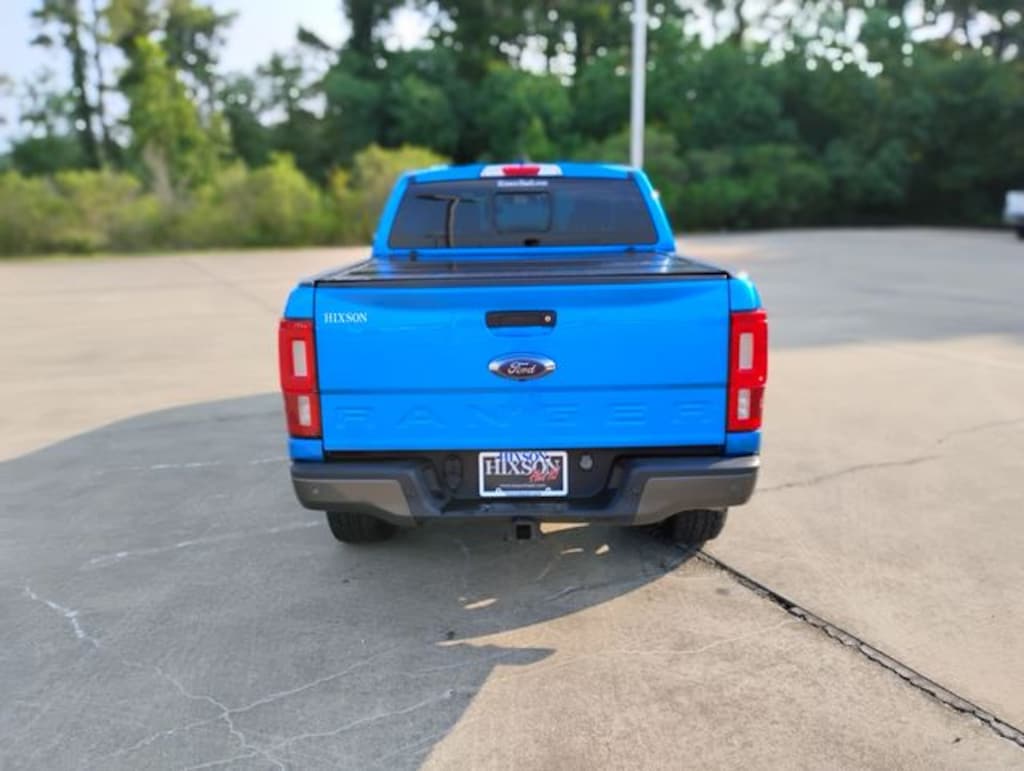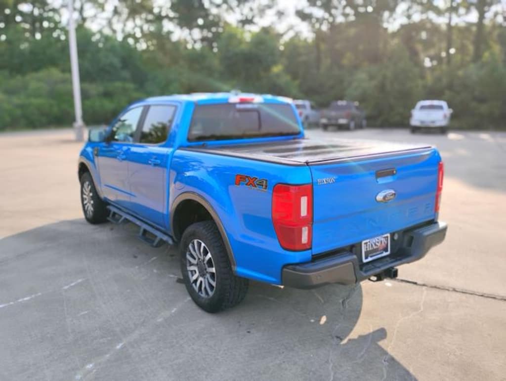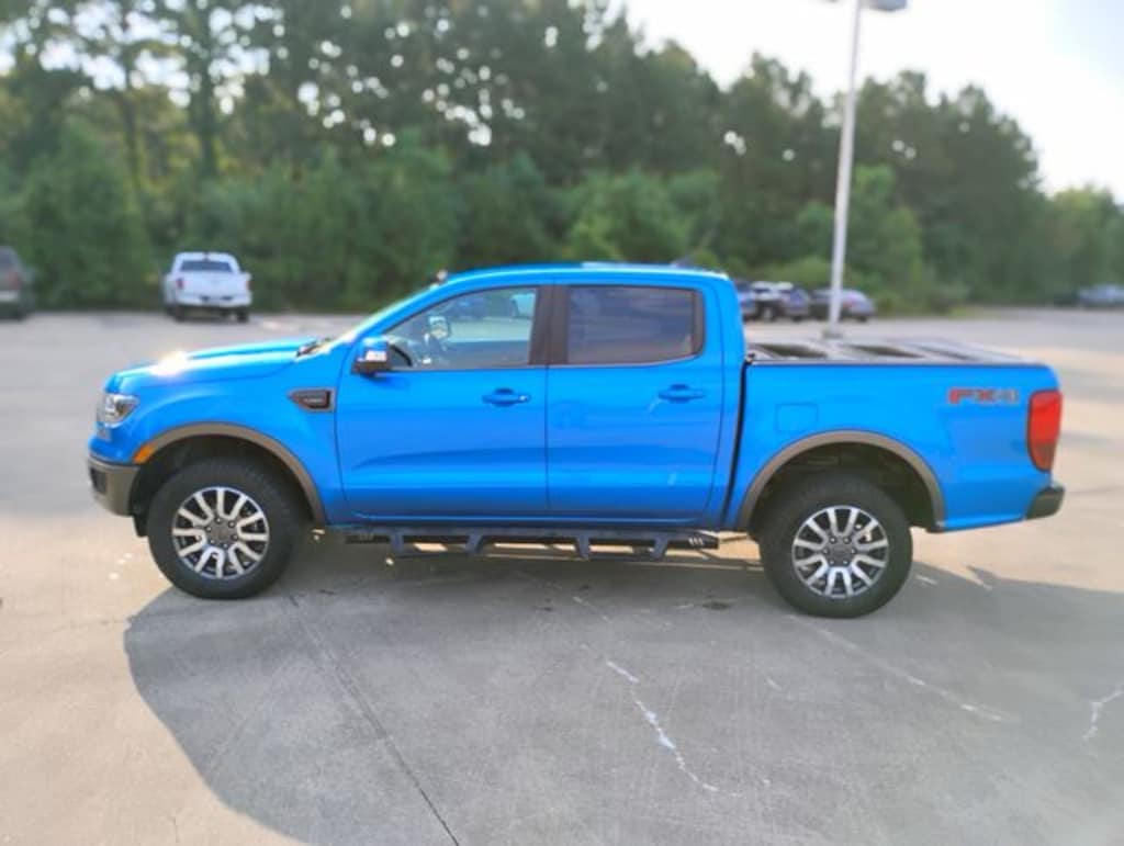 Blue 2021 Ford Ranger Lariat 4WD 10-Speed Automatic EcoBoost 2.3L I4 GTDi DOHC Turbocharged VCT LOCAL TRADE, NON SMOKER, DETAILED, OIL CHANGE, NEW TIRES, NEW BRAKES, APPLE CARPLAY, ANDROID AUTO, 4WD, 4-Wheel Disc Brakes, 6 Speakers, ABS brakes, Adaptive Cruise Control, Air Conditioning, Alloy wheels, AM/FM radio: SiriusXM, AM/FM Stereo, Auto High-beam Headlights, Auto-dimming Rear-View mirror, Automatic temperature control, Black Grille w/Magnetic Surround & Bars, Brake assist, Bumpers: body-color, Class IV Trailer Hitch Receiver, Compass, Delay-off headlights, Driver door bin, Driver vanity mirror, Dual front impact airbags, Dual front side impact airbags, Electronic Stability Control, Emergency communication system: SYNC 3 911 Assist, Equipment Group 501A High, Exterior Parking Camera Rear, Forward Sensing System, Front anti-roll bar, Front Bucket Seats, Front Center Armrest, Front dual zone A/C, Front fog lights, Front Heated Leather-Trimmed Bucket Seats, Front reading lights, Front wheel independent suspension, Fully automatic headlights, FX4 Off-Road Box Decal, FX4 Off-Road Package, Garage door transmitter, Heated door mirrors, Heated front seats, Illuminated entry, Leather Shift Knob, Leather steering wheel, Low tire pressure warning, Magnetic Front & Rear Bumper, Magnetic Wheel-Lip Molding, Navigation, Occupant sensing airbag, Off-Road Screen in Cluster, Off-Road Tuned Suspension, Outside temperature display, Overhead airbag, Overhead console, Panic alarm, Passenger door bin, Passenger vanity mirror, Power door mirrors, Power driver seat, Power passenger seat, Power steering, Power windows, Radio: B&O Sound System by Bang & Olufsen, Rain-Sensing Wipers, Rear reading lights, Rear seat center armrest, Rear step bumper, Rear window defroster, Remote keyless entry, Remote Start, Security system, SiriusXM Satellite Radio, Speed control, Speed-sensing steering, Sport Appearance Package, Sport Box Decal, Steering wheel mounted audio controls, SYNC 3, SYNC 3/Apple CarPlay/Android Auto, Technology Package, Telescoping steering wheel, Terrain Management System, Tilt steering wheel, Traction control, Trailer Tow Package, Tray Style Floor Liner, Trip computer, Turn signal indicator mirrors, Variably intermittent wipers, Voltmeter, Wheels: 17" Magnetic Painted Aluminum Sport, Wheels: 18" Machined Alum w/Stealth Gray Pockets, Wheels: 18" Machined Aluminum w/Magnetic Pockets, 4WD.